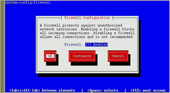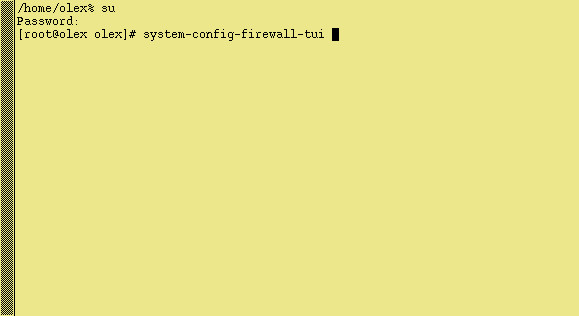 Open the firewall user interface by entering:"System-config-firewall-tui".