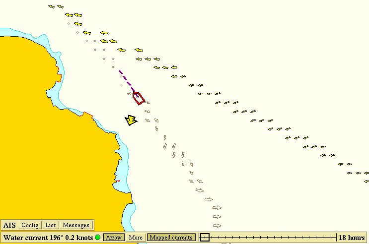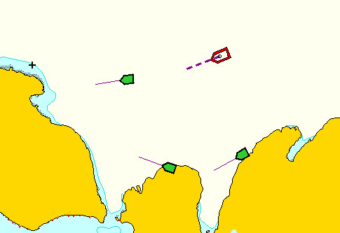 Typical view with the ship sailing towards northeast in the middle of the screen.