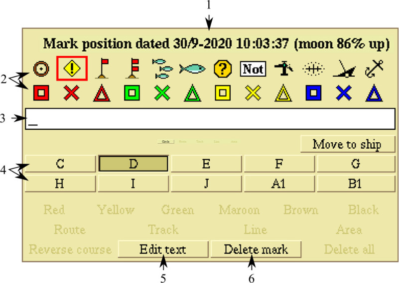Note that to stop the logging of ARPA tracks, the logging of each target must be turned off manually. Activate Info → Present trip to display the tracks for all ARPA targets. If an ARPA target disappears, the track will also disappear.