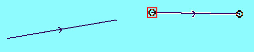 The echogram opens to the right, and a red line is displayed on the screen that shows the echograms extent.